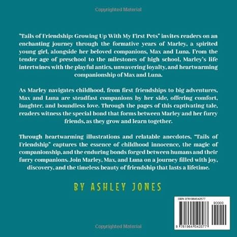 "Tails of Friendship: Growing Up With My First Pets" invites readers on an enchanting journey through the formative years of Marley, a spirited young girl, alongside her beloved companions, Max and Luna. From the tender age of preschool to the milestones of high school, Marley's life intertwines with the playful antics, unwavering loyalty, and heartwarming companionship of Max and Luna.
